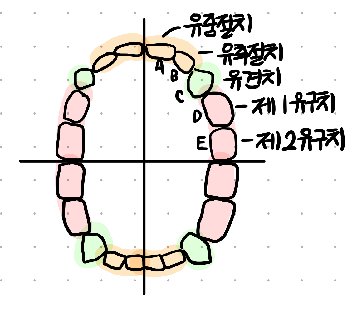 - 대생치 : 유치가 탈락한 자리에 맹출하는 치아