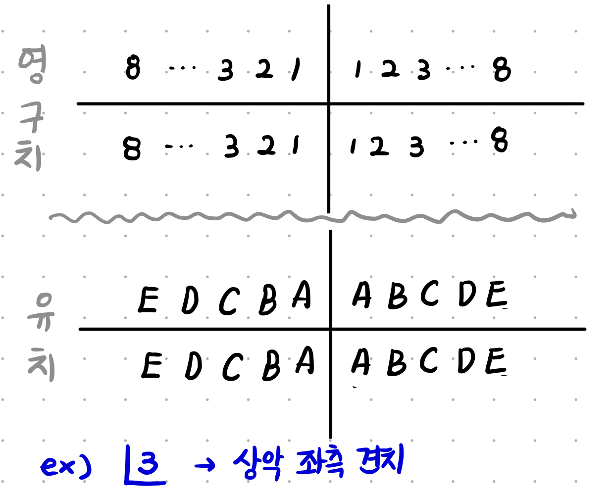 - 영구치는 아라비아 숫자(1~8), 유치는 알파벳 숫자(A~E)로 표시